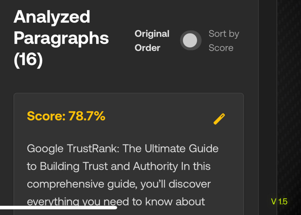 Figure 4.QueryMatch is AI Powered and rewrites your paragraphs for you in real time. It runs multiple variations at the same time, testing ways to optimize your content. When it finds the best match, it delivers a new paragraph and its similarity score. The optimized content is now ready for you to publish on your website.
